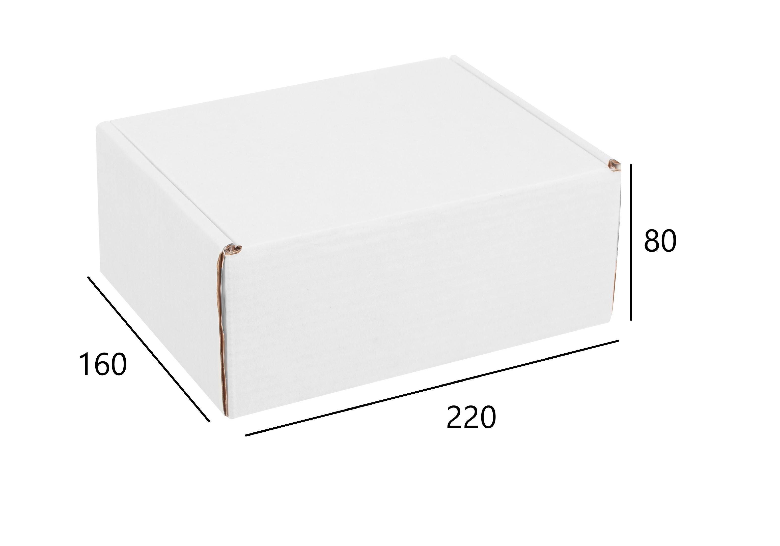 Самосборный короб с ушками Т-23 220*160*80 мм, белый/белый, профиль Е, FEFCO 0427